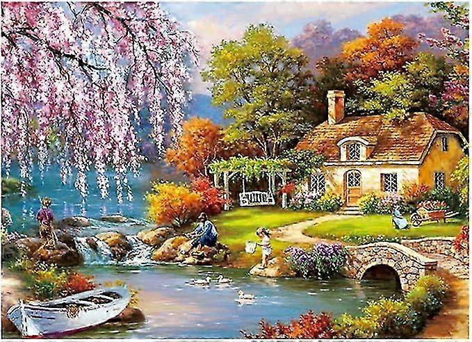 25-26 Jigsaw Puzzle 1000 Pieces Adults Oil Painting Rural Landscape Country House Toys Educational Gifts for Holidays for Family and Friends