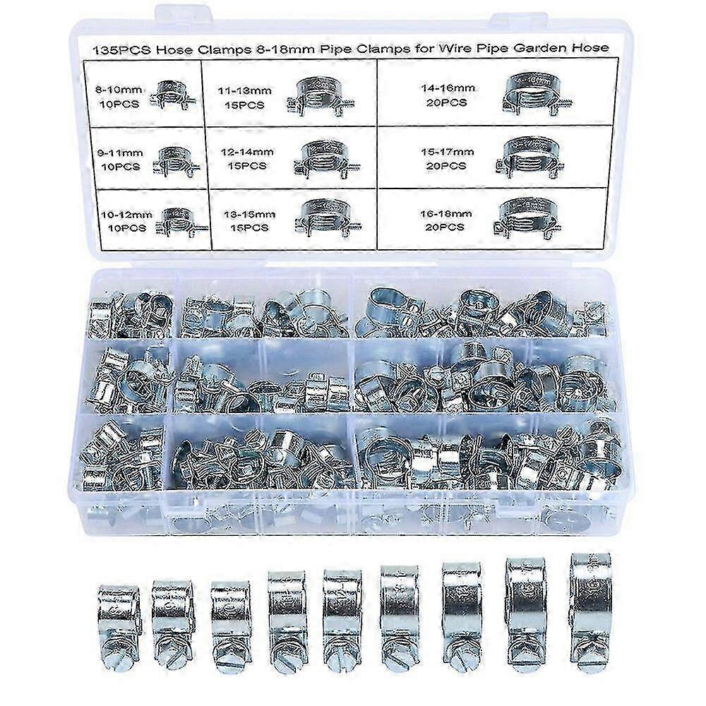 25-26 60/135pcs Pipe Clamp Hose Clamp Water Pipe Fuel Hose Clips Fasteners Clamps Tube Clamp Metal Pipe Clamps Assortment Kit 8-18mm