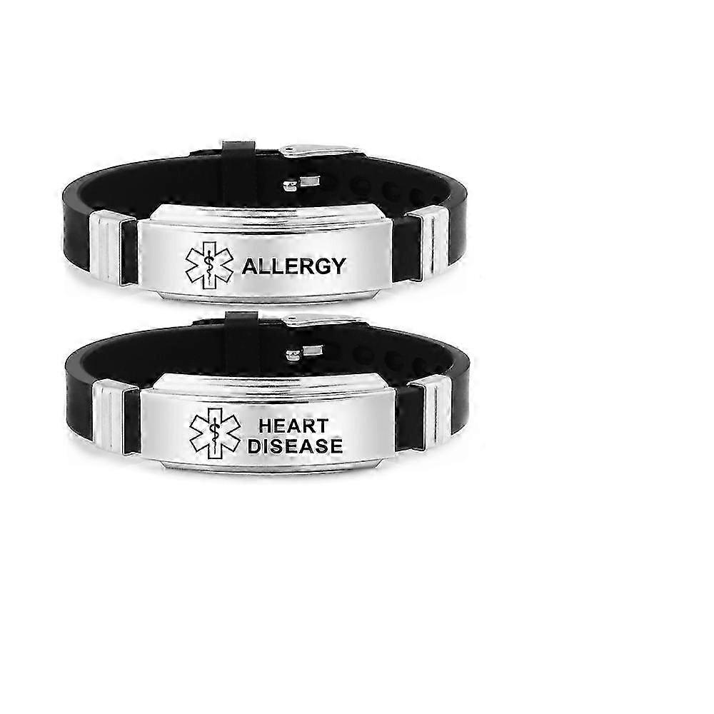 25-26 Silicone Bracelet with Stainless Steel Medical Symbol for Heart Disease Alert