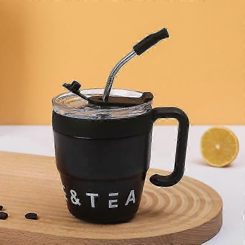 25-26 480ml Coffee Cup with Straw Lid Stainless Steel Thermos Mug for Hot Cold Drinks Water Tea Milk Office Outdoor Portable Bottle