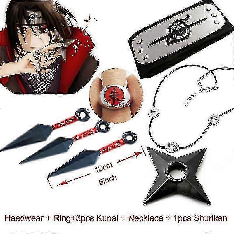 25-26 Harajuku Cosplayuchiha Itachi Cosply Costume Headband Necklace Ring Kunai Deidara Tobi Halloween Costume For Men Kids Pain Cloak