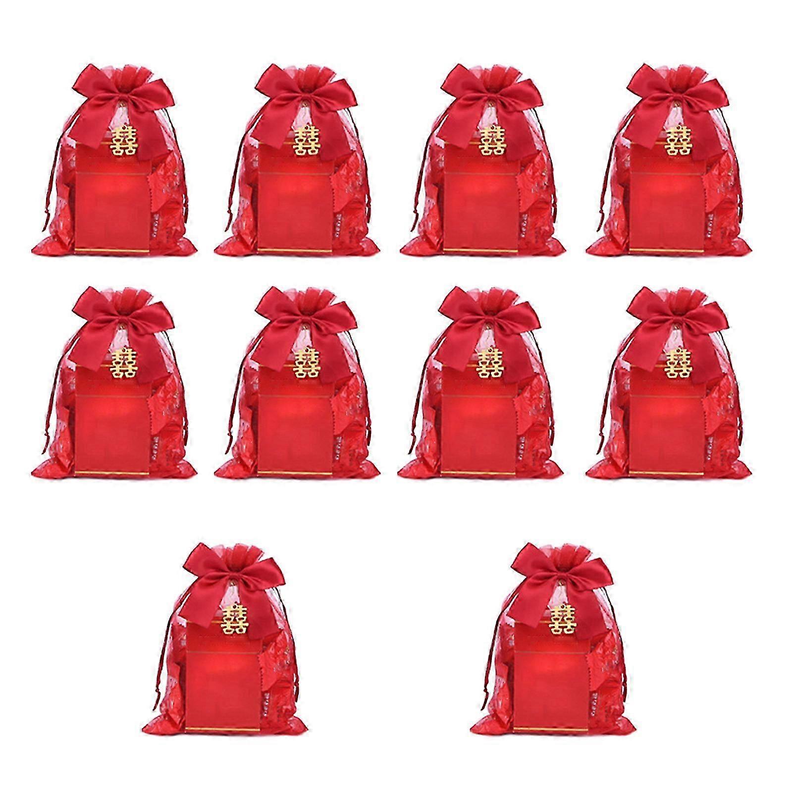 25-26 10Pcs Wedding Supply Pouch Detailed Easy to Carry Meticulous Workmanship Chinese Red Drawstring Gift Bag for Store