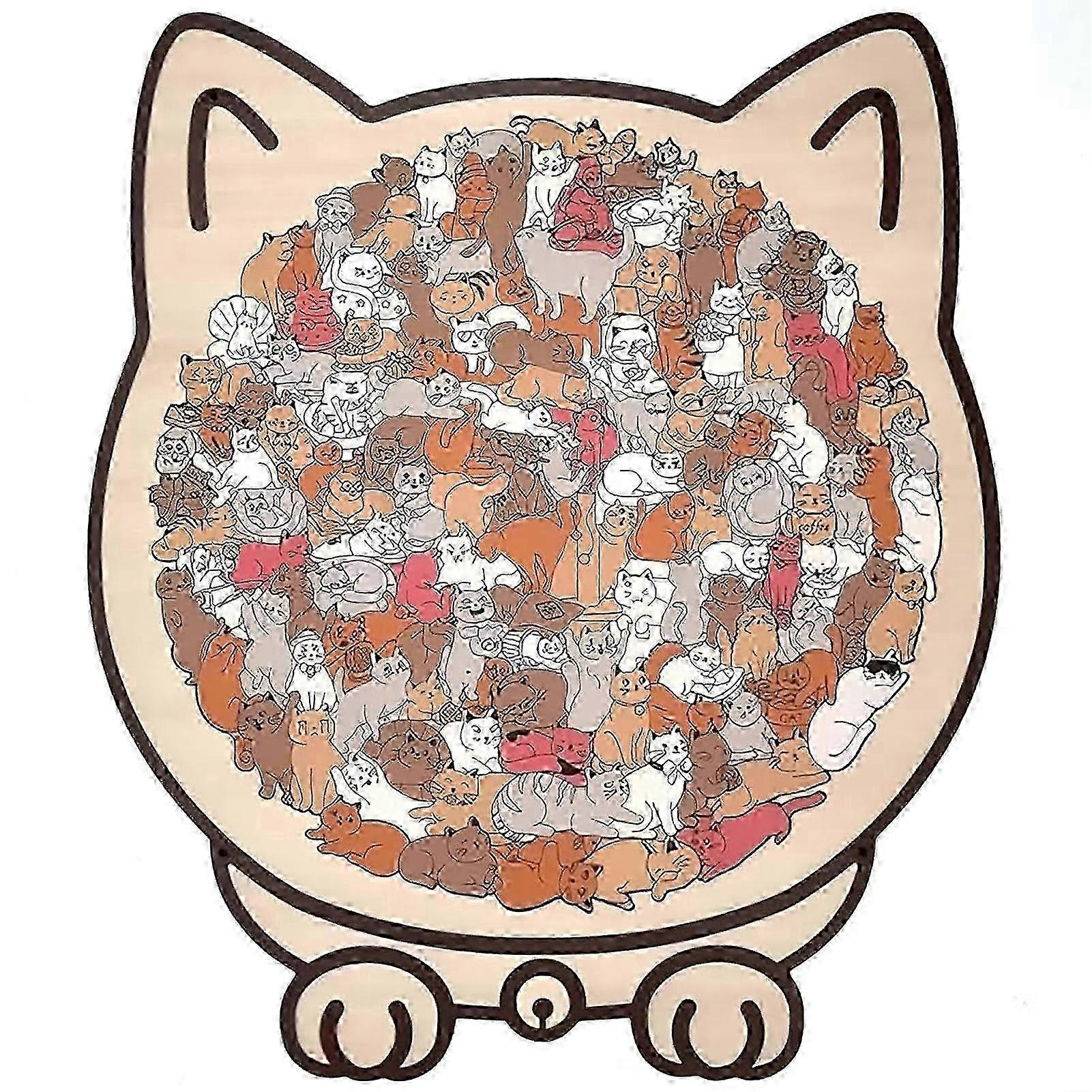 2025 Morandi Style Cat Shaped Wooden Jigsaw Puzzle with Frame, 3D Animal Puzzle for Kids & Adults