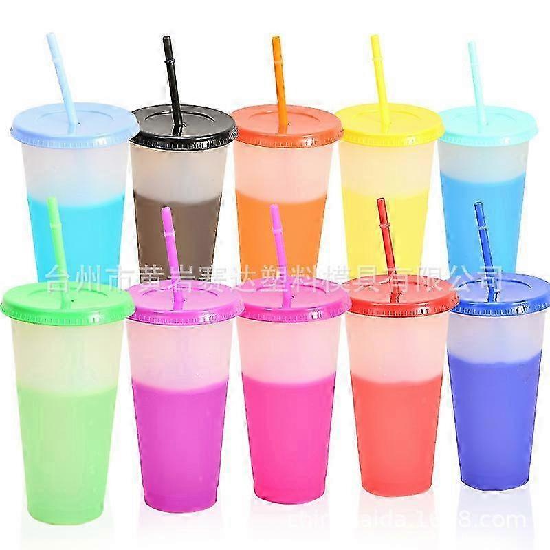 2025 10pcs 24oz 710ml Color Changing Cup with Frosted Straw Lid, Multiple Colors