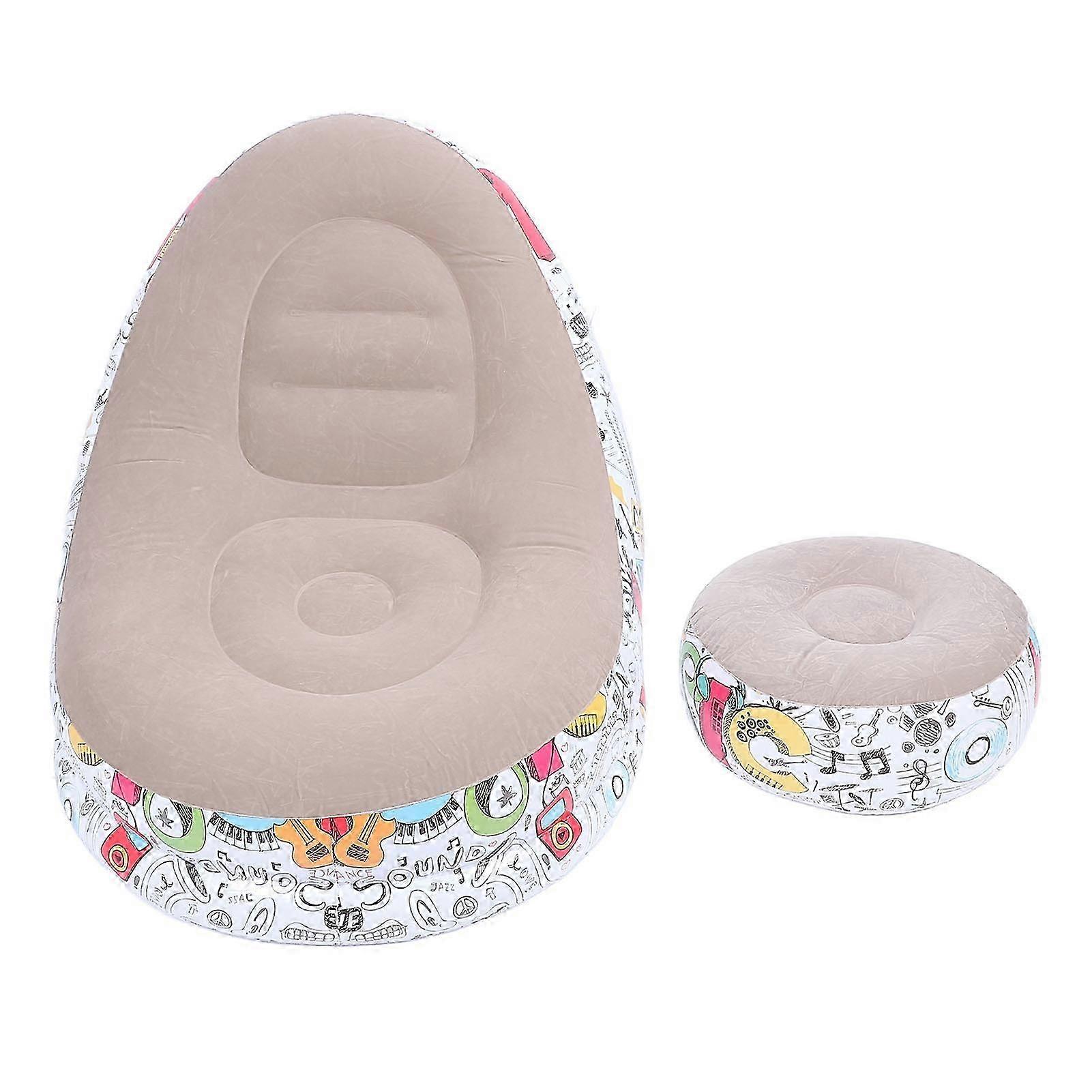 25-26 Inflatable Lounge Chair Cartoon Graffiti Minimalist Flocking Air Couch Sofa with Foot Stool for Living Bed Room