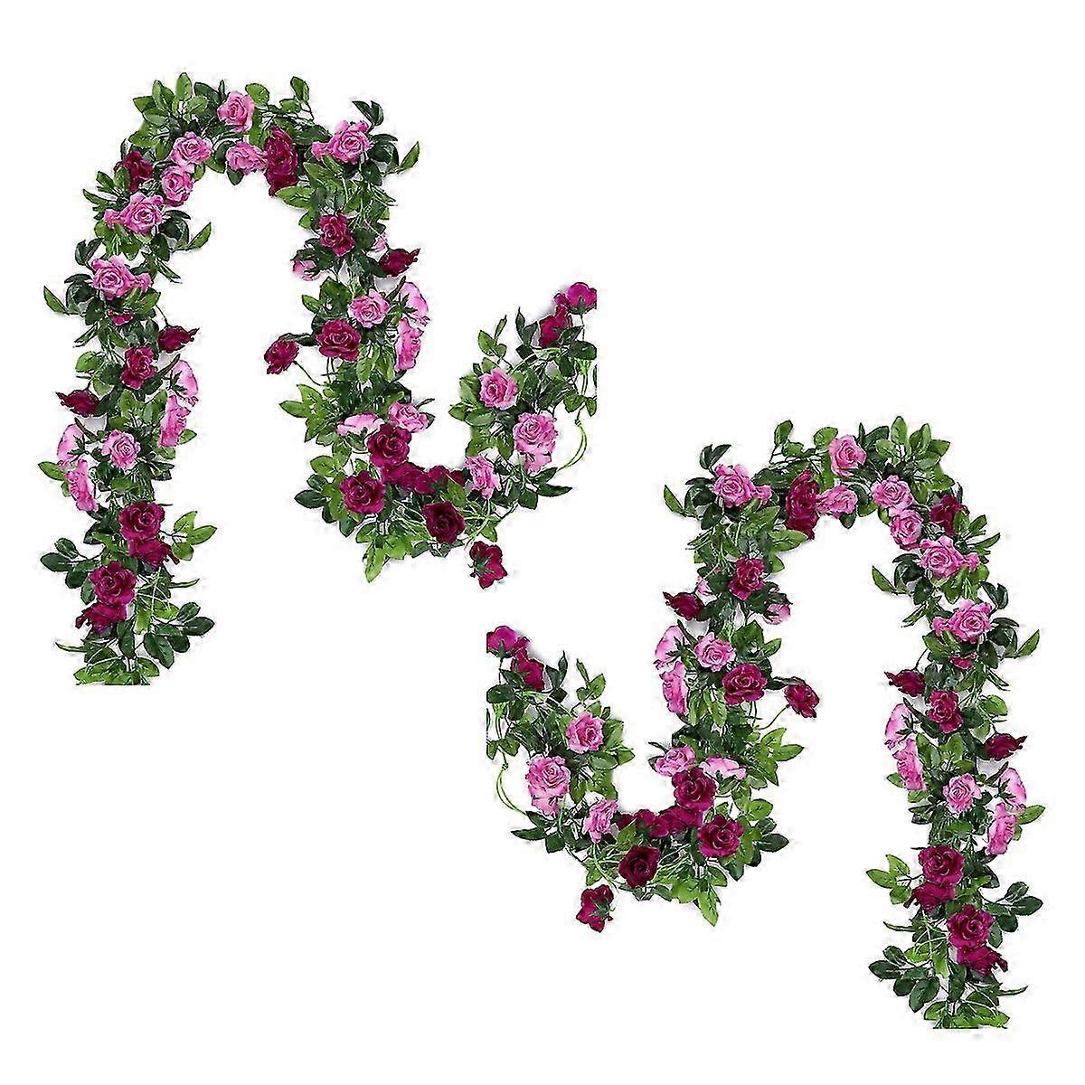 25-26 2PCS Flower Garland Fake Rose Garland, Artificial Flower Garland Artificial Vines Flowers Hanging Silk Rose Vine Wedding Home Office Arch Arrang