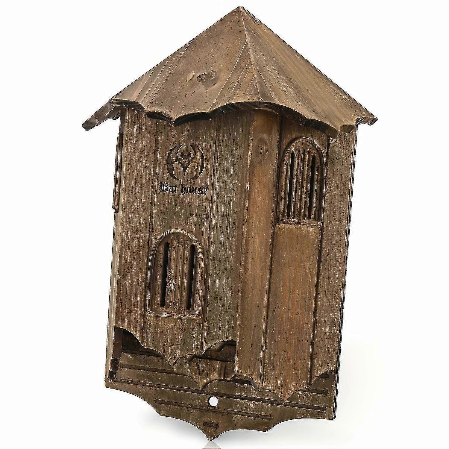 Wooden Castle Bat Houses for Outside Bat Box for Outdoors - Large Three Chamber Box Perfectly Designed to Attract Bats - Durable and Easy to Hang 26s