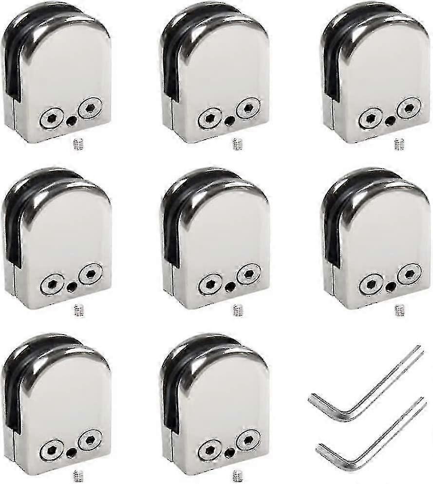 [] Made of 304 stainless steel and rubber, anti-rust, waterproof and heat resistant, not easy to aging, polished surface, smooth and beautiful [Solid fixing] Coem with 2 non-slip rubber washers and fine adjustment screws, to make it hold the glass tightly and tightly, no need to drill holes in the glass[Easy to install] Just insert the glass into the space of the clamps, then tighten the screw, come with 2 hex screwdrivers for easy screw loosening or tightening [Size] 5.2 x 4.3 x 2.4cm, 8 clips included in total, suitable for 8-10mm glass, flat base design allows easy installation on square tubes or other flat surfaces[Applicable] Ideal for indoor and outdoor use, such as pool glass brackets, stair glass brackets, heavy duty brackets, handrail brackets deck and floor supports, etc " Note: Due to the light and screen setting difference, the item's color may be slightly different from the pictures. Please allow slight dimension difference due to different manual measurement.