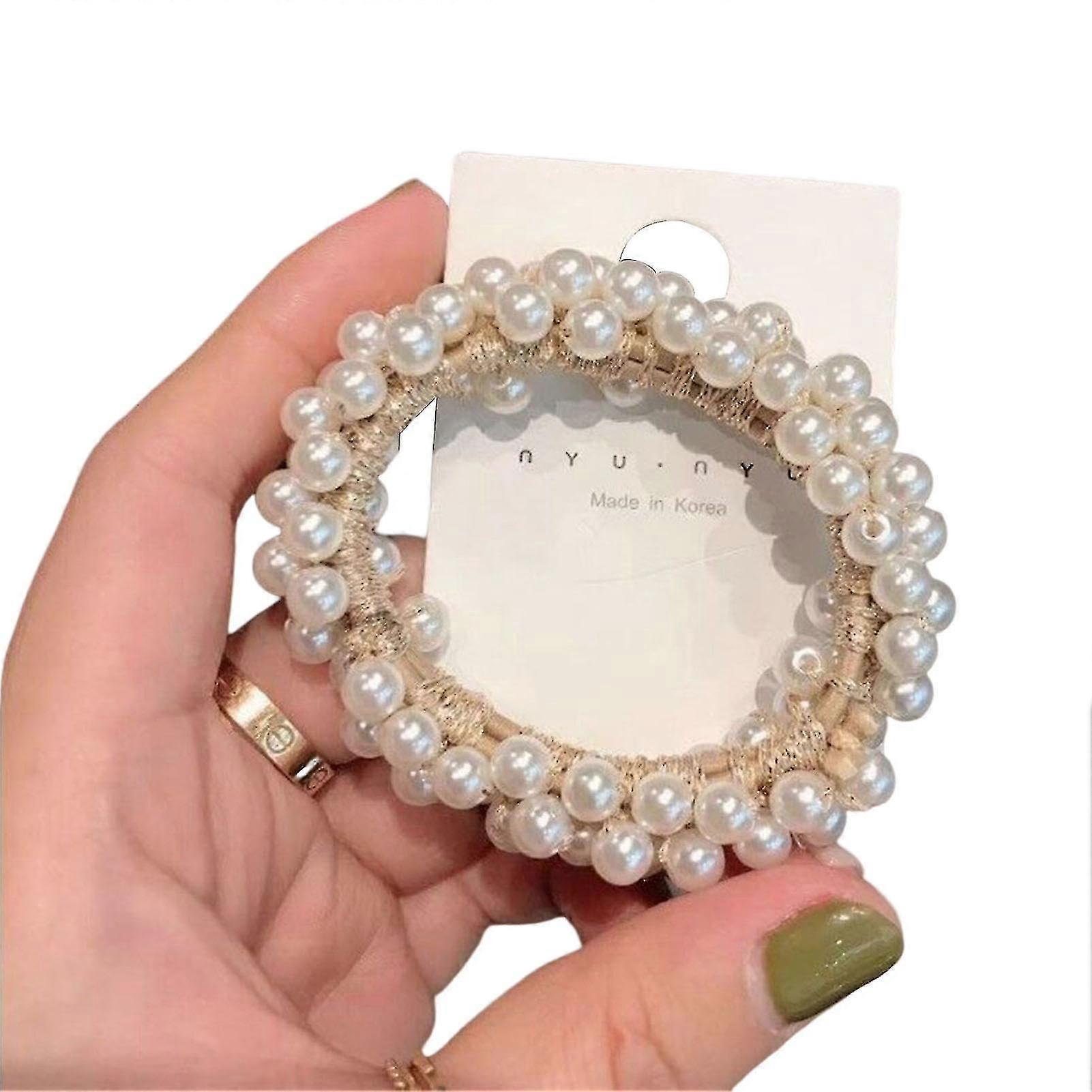 Lady Full Pearl Hair Ties With High Elastic Gold Thread Hair Scrunchies For Woman Hair Styling Tools 26s