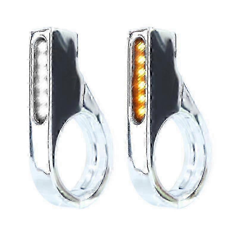 Features: Improve your motorcycle's visibility and safety with this motorcycle led turn signal light. Suitable for motorcycles with 41mm fork tubes, it provides better visibility and reaction time for oncoming drivers. This turn signal light features a convenient design for easy installation on your motorcycle's fork tubes. With its double color led bulbs, it serves as both a signal indicator and a daytime running light, improving visibility in various weather conditions. Designed for motorcycle enthusiasts who love personalized modifications, this led turn signal light is an essential accessory. Its materials ensure durability, waterproofness, and resistance to shocks, making it suitable for all kinds of road conditions and harsh weather. Whether you're a daily riders looking to improve safety and visibility or a member of a motorcycle club participating in group activities, this led turn signal light is perfect for you. Use it on city roads to clearly indicate your direction, helping other vehicles and pedestrians notice your intentions. Stand out from the crowd and add a unique touch to your motorcycle with this motorcycle led turn signal light. Its energy saving led light source ensures a long lifespan, while the easy installation makes it hassle free. Specifications: Material:Aluminum Alloy+Acrylic+Plastic Length:Approx.8.7cm/3.42inch Color:Black/Electroplate Power of light source: 3W Voltage: 12V Note: .Please allow 1-2cm errors due to manual measurement, make sure that you do not mind before you order. .Due to the difference between different monitors, the picture may not reflect the actual color of the item. Thanks for your understandings. Package includes: 1 Set Turn Signal Indicator Note: Due to the light and screen setting difference, the item's color may be slightly different from the pictures. Please allow slight dimension difference due to different manual measurement.