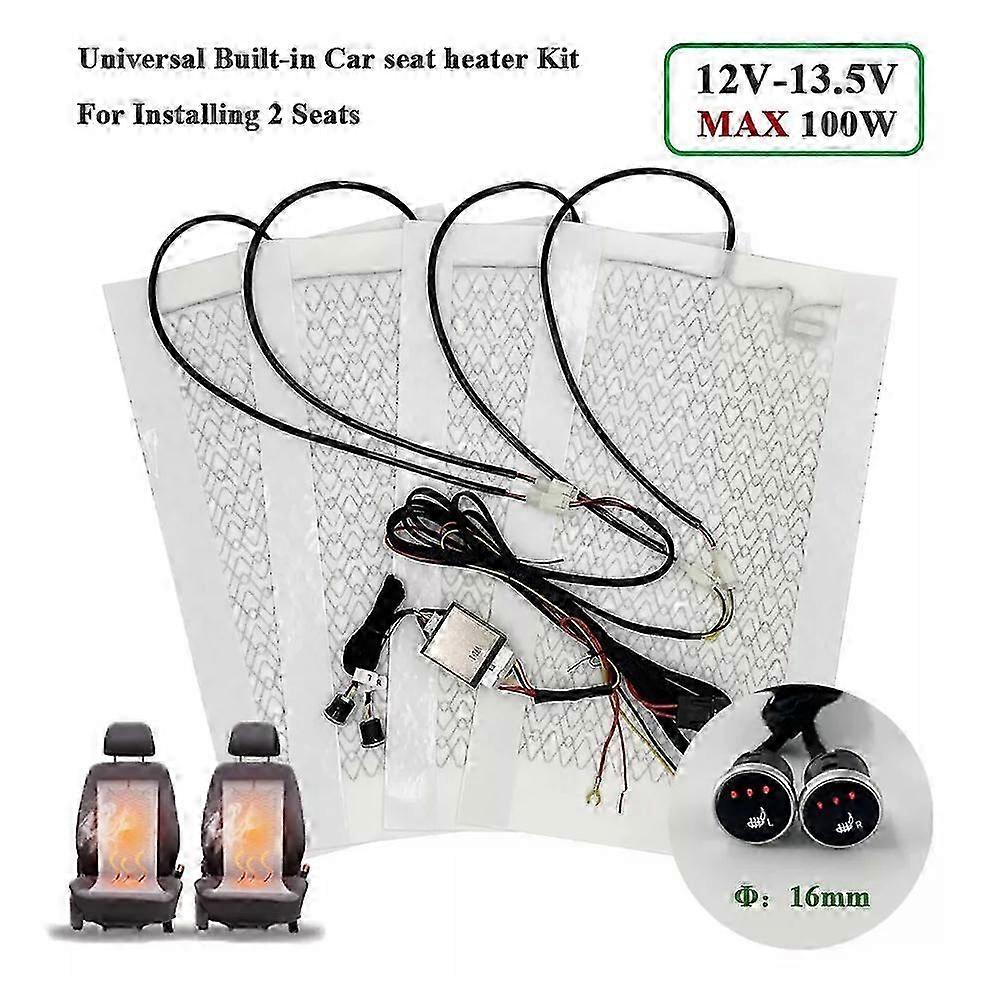 4Pcs 12V Universal Carbon Fiber Car Heated Pad 2-Seat Heater Kit 3-Level Switch 26s