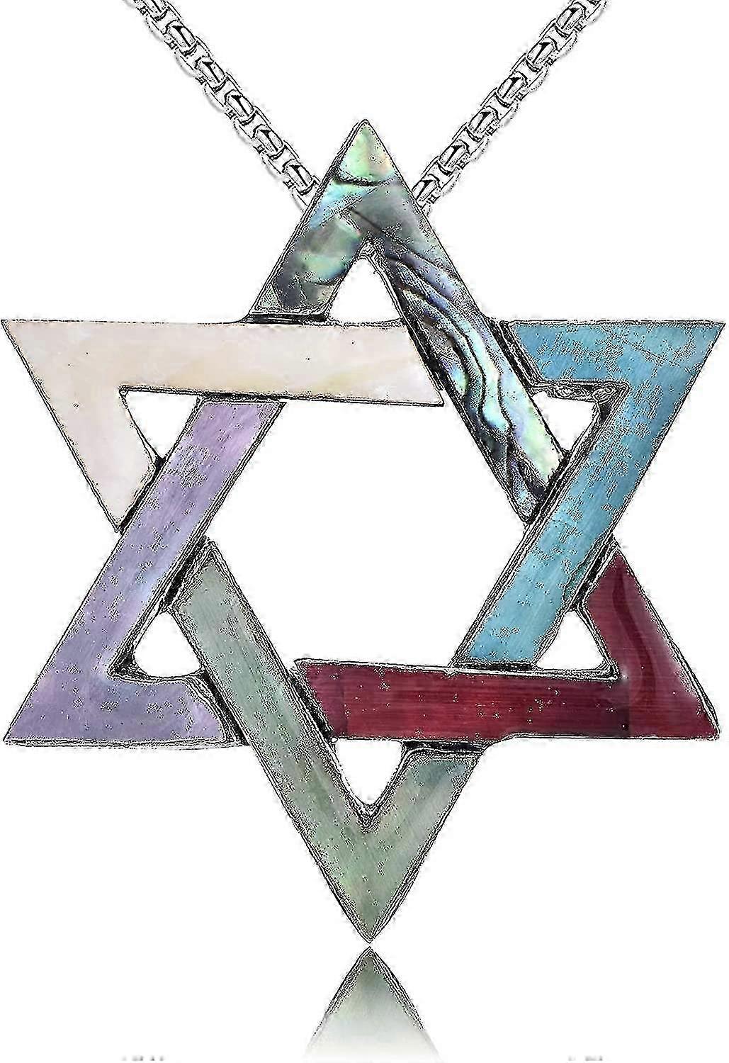 Star Of David Necklace,sea Abalone Shell Hexagram Star Pendant Jewish Israel Jewelry Trendy Geometric Star Pendant Necklace For Women Men 25-26