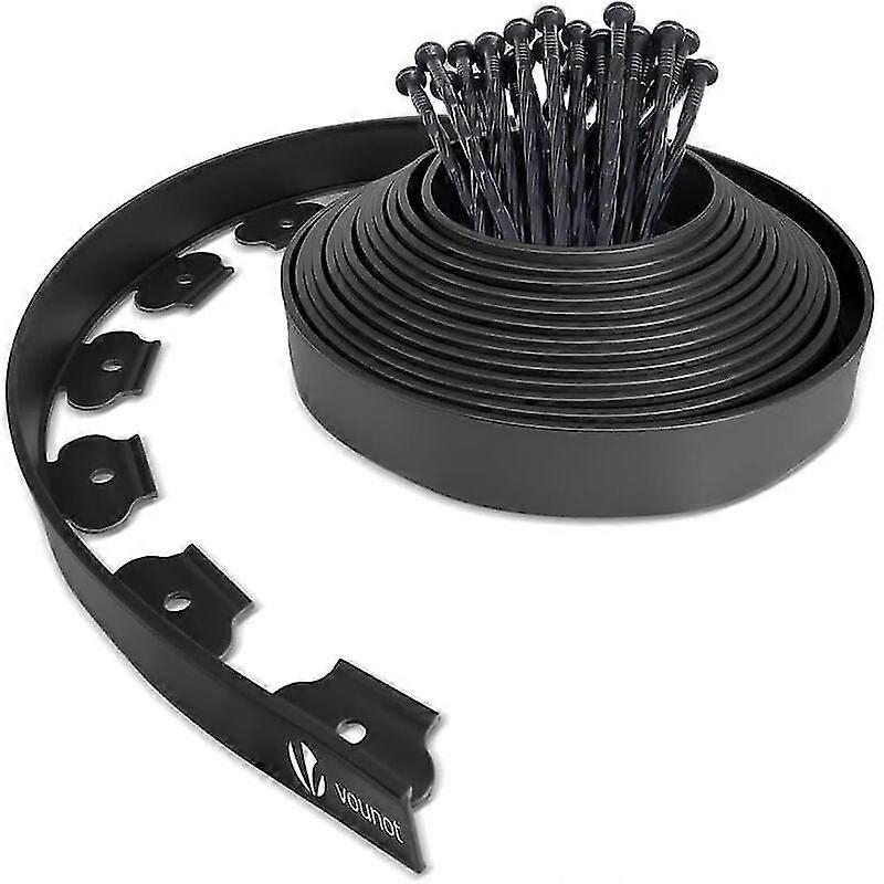 Flexible garden edging 10 cm x 10 meters with 30 anchor stakes - black 25-26