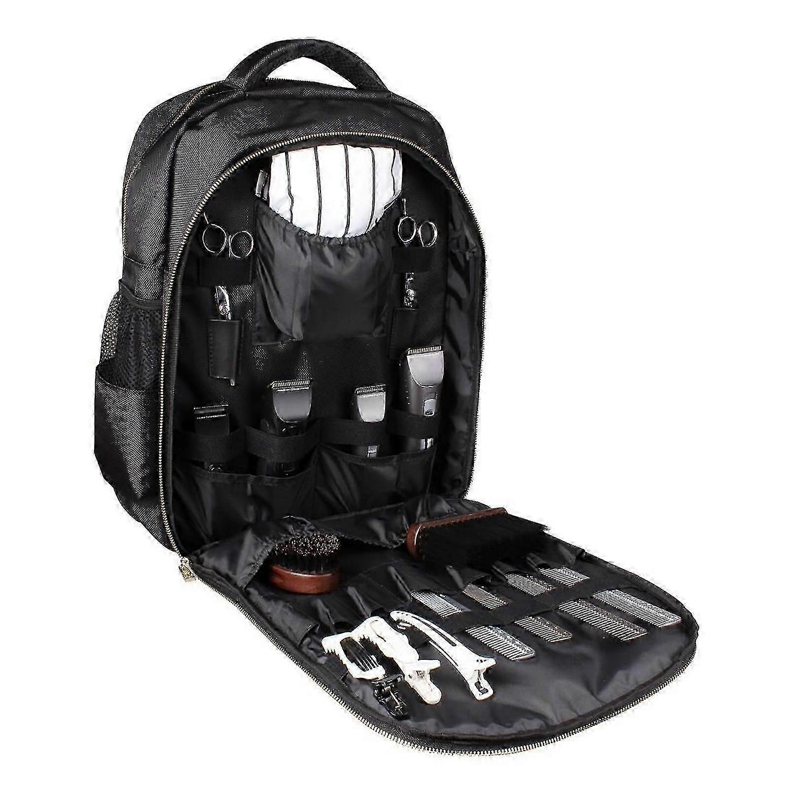 Description:Large storage capacity, can be used to store scissors, combs, hair and other hairdressing tools.Shoulder backpack design, multi-functional, releasing your hands and reducing the pressure on the hand.Storage pockets on both sides, with elastic strap design, tight and durable, can be placed on a kettle, and elastic straps inside to secure your equipment and prevent movement.Made of waterproof Nylon and polyester, pressure resistant anti-wrinkle, stable and durable, with Smooth zip in golden color and multi inside pocketsLightweight, easy to carry. Both travel use and daily use.Exquisite workmanship, overall looks simple and elegant, professional and practical, can be used as ordinary travel shoulders bag.Specification:Material:Nylon+polyesterType: Size: Approx. 48 x 35 x 20cm/18.9 x 13.8 x 7.9 inch Colour:BlackFeatures:WaterproofPackage Includes:1 Piece Note:The hairdres Note: Due to the light and screen setting difference, the item's color may be slightly different from the pictures. Please allow slight dimension difference due to different manual measurement.