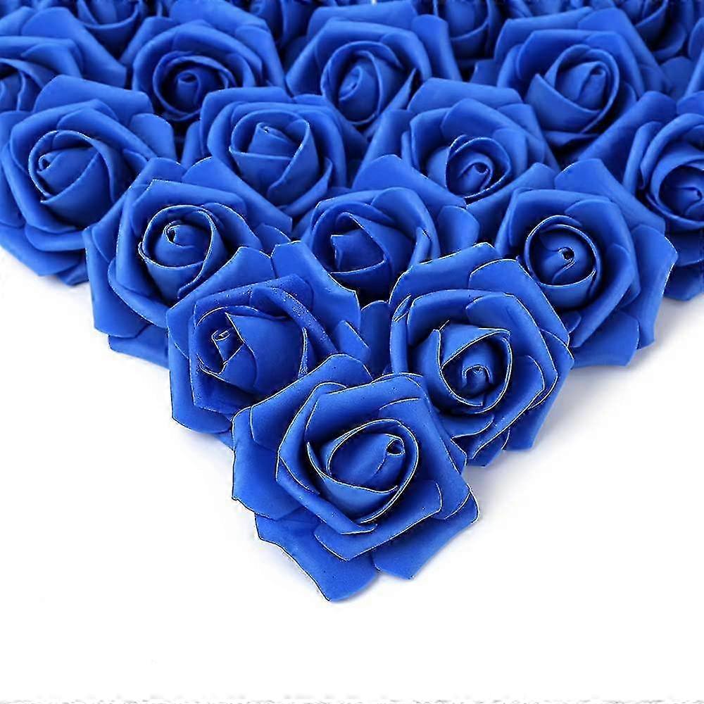 50 artificial flowers roses heads, faux flowers real looking blue fake flowers roses (royal blue) 25-26