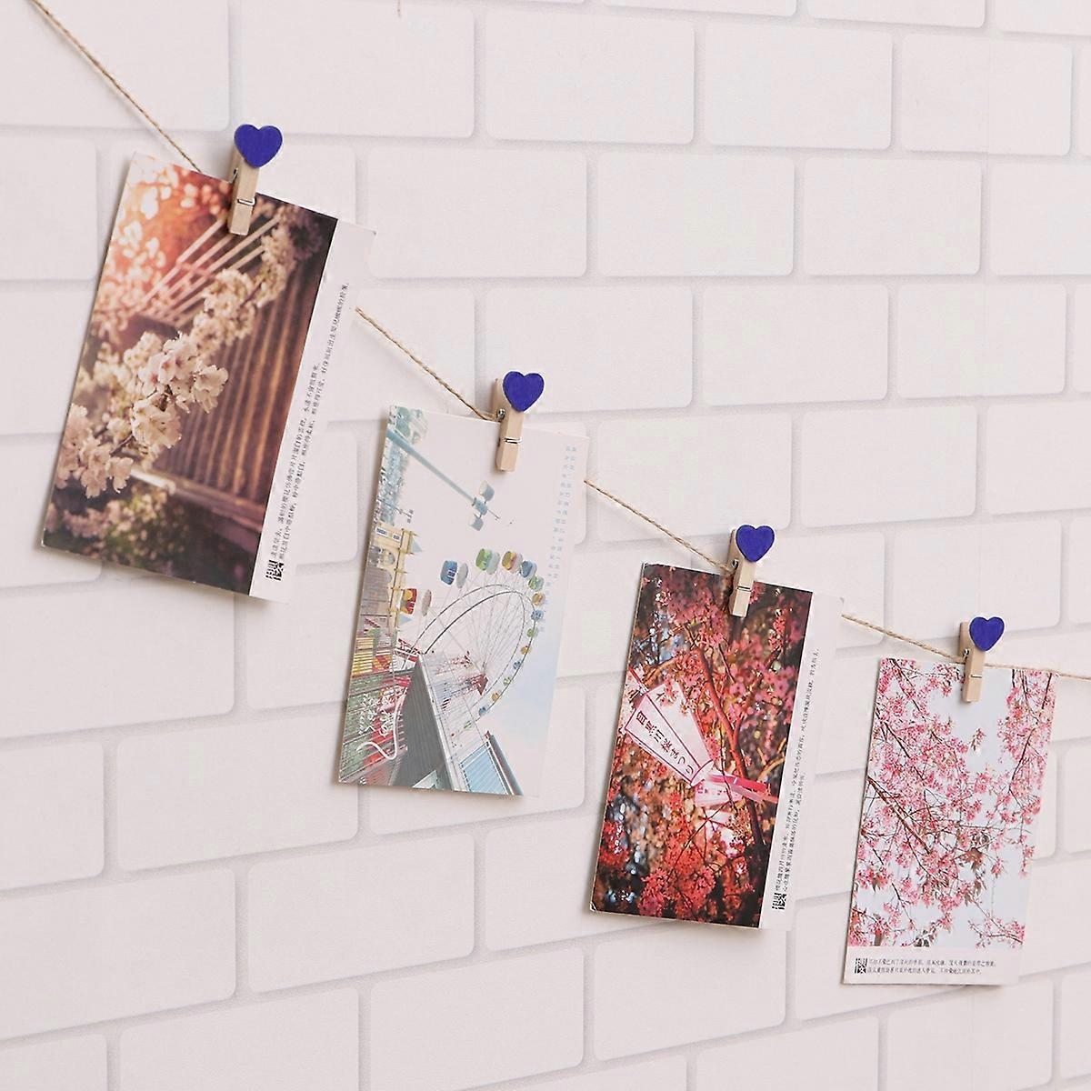 30pcs Blue Wooden Photo Clips Heart Clothespins for Wedding Party Decor and Crafts