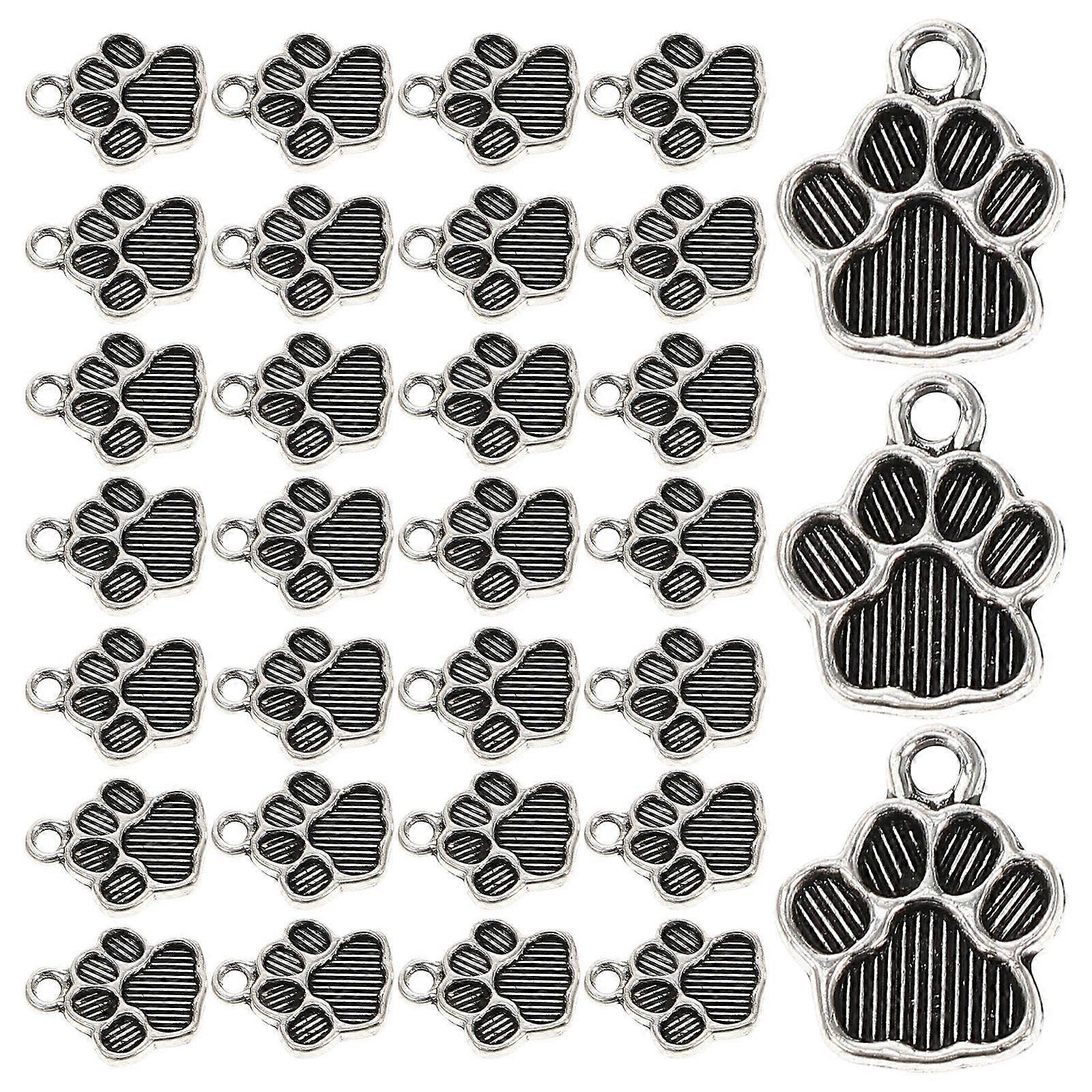 Dog Paw Charms Metal Pendants for Jewelry Making 100Pcs Silver Zinc Alloy