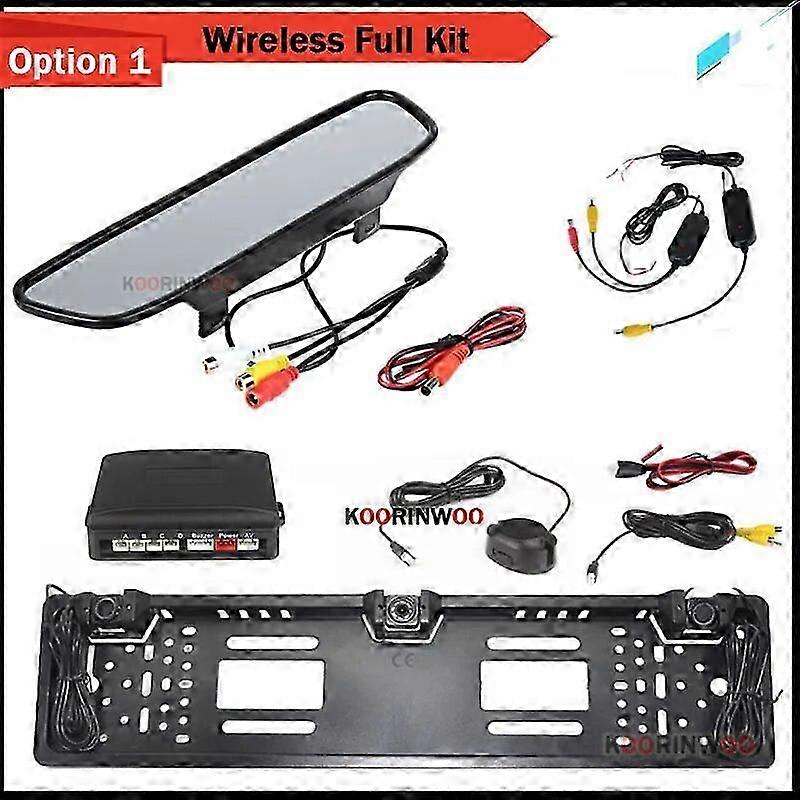 25-26 Koorinwoo European License Plate Frame camera For Number Car Rear View Camera With Sensor Parking Sensors LCD Monitor Mirror