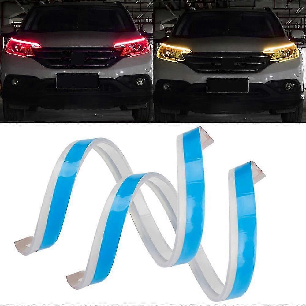 2Pcs 60cm Cuttable 12V Car DRL Flexible LED Strip Daytime Running Light Waterproof Turn Signal Light - Red/Yellow •The light is equipped with a built-in mini control module. The controller is embedded in the light bar. Sealed inside the lamp tube together with the bulb panel. Driver integrated IC. Safe and strong anti-interference ability. Save installation space. Start-up time is shorter. There will be light scanning when starting,the effect is better •Flexible design,so you can make any shape bend to better fit your vehicle and make the light dark spot free •Every 3 lamp beads can be cut if needed,cut off in other places may cause the lamp to have a short circuit •Adhesive sticker on the back,do not need to drill in the car,easy installation Specifications: •Light source type: 2835 lamp bead •Protective cover: silicone sleeve •Voltage: 12V •Current: 0.15A •Electric power: 1.44W •Installation position: gap between headlight and hood Package included: •2 x DRL Flexible LED Strip •Other items not include Note: Due to the light and screen setting difference, the item's color may be slightly different from the pictures. Please allow slight dimension difference due to different manual measurement.