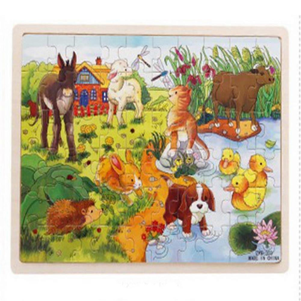 2026 60pcs/ Set Wooden Cartoon Jigsaw Toy Early Educational Toys For Kid Baby Child(farm With Pond)