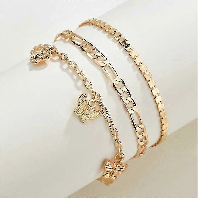 2026 Triple Butterfly Anklet, Retro Butterfly Gold Chain Anklet For Women Punk Heart Geometric Bracelet On Legs Women Fashion Jewelry