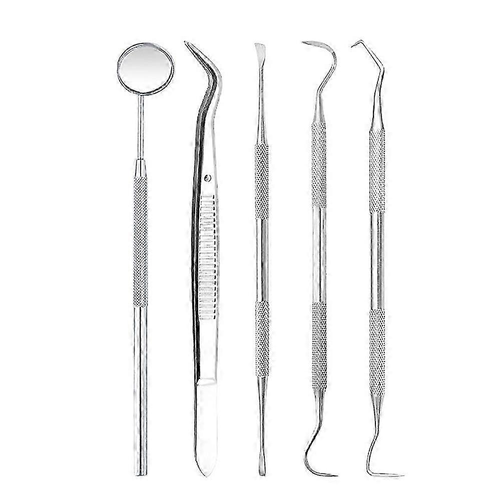 5Pcs Stainless Steel Dental Mirror Scaler Tartar Scraper Calculus Remover Kit 26-27s