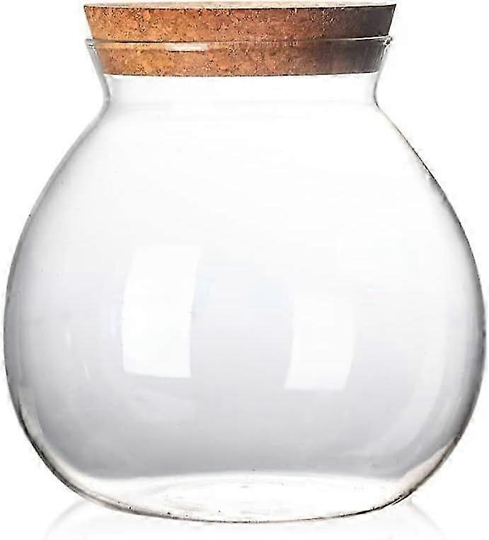26-27 Clear Round Glass Jar with Cork Tea Caddy Container Small Ball Moss DIY Storage Home Decoration 500ml 17oz