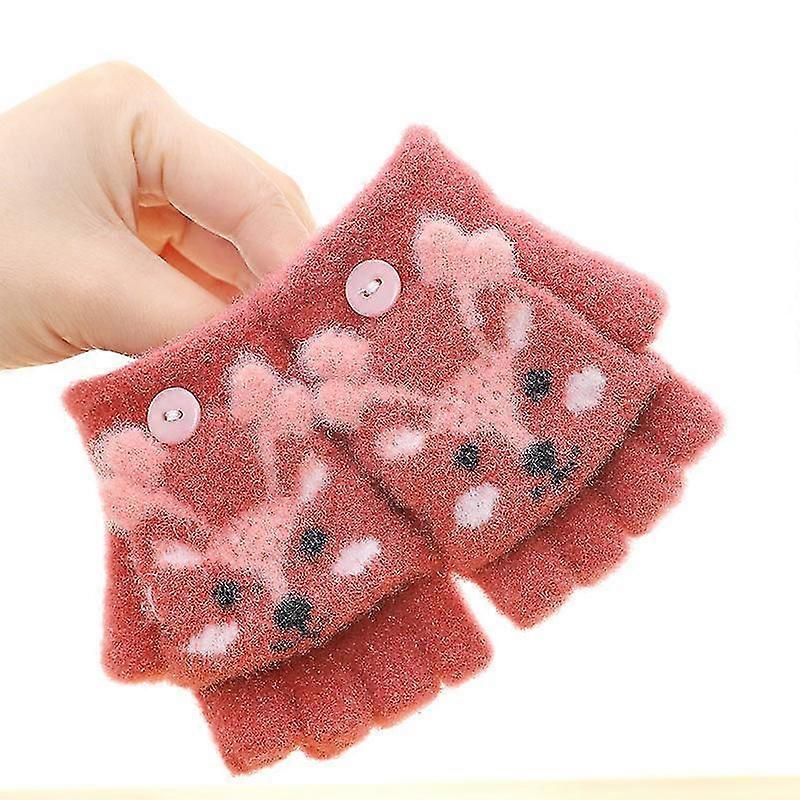 Winter Boys And Girls Baby Thick Warm Children Cartoon Elk Flip Gloves Kindergarten Five-finger Writing 26-27s