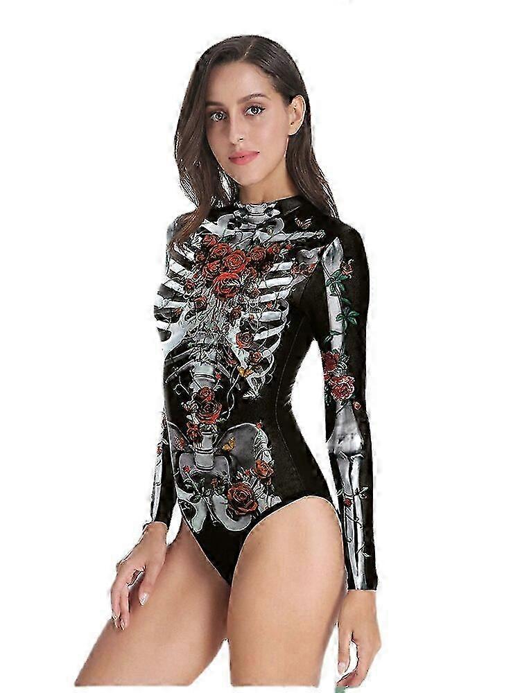 26-27 Skeleton Printing Swimsuit Zipper Long Sleeve One Piece Triangle Halloween Costumes