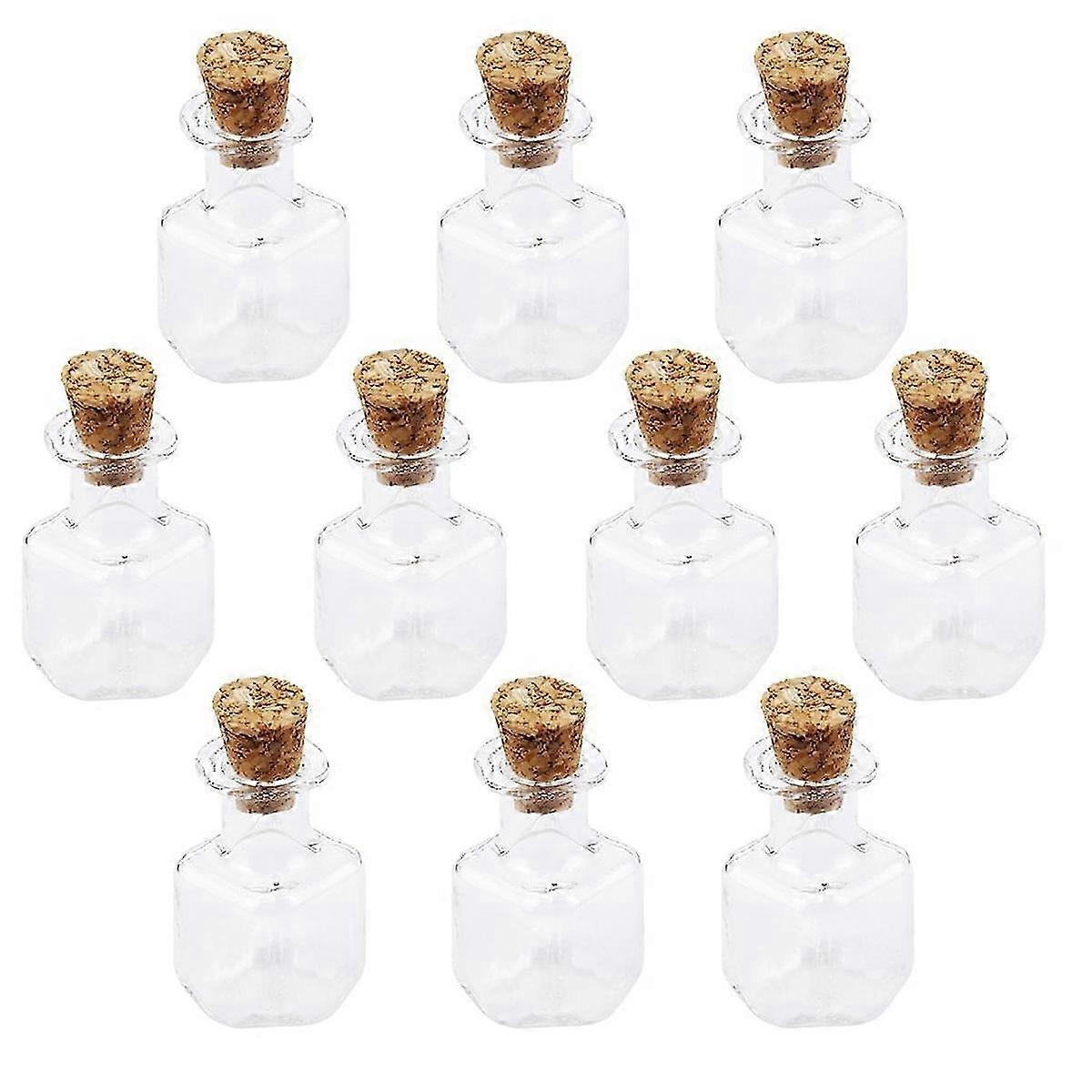 26-27 10pcs Cubic Shape Mini Glass Bottles Jars with Cork Wish Note Craft Bottle (Clear)