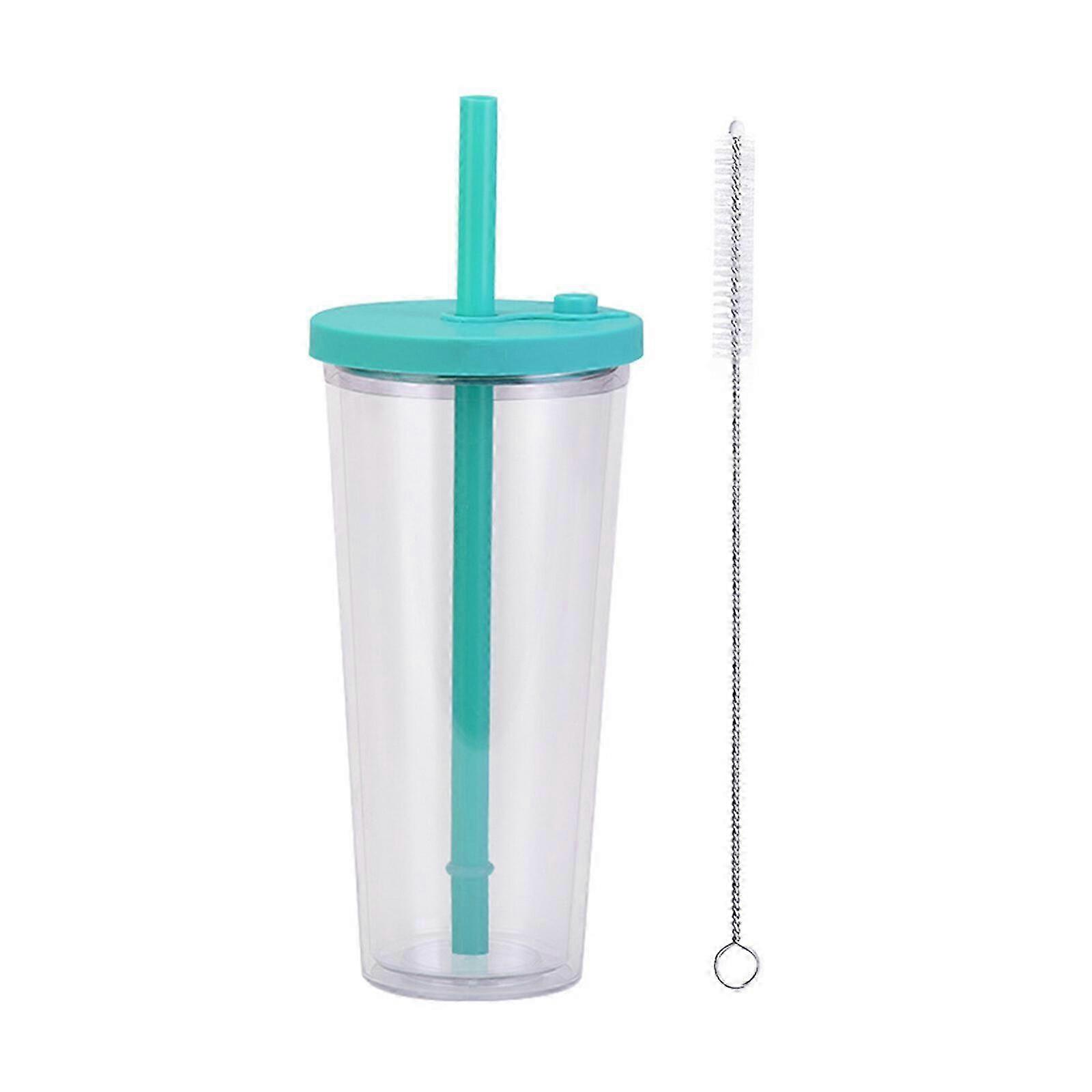 Bubble Tea Straw Cup With Wooden Lid And Stainless Steel Straws Drinks Grey Plastic Gradient Green White Cleaning Brush 26-27s