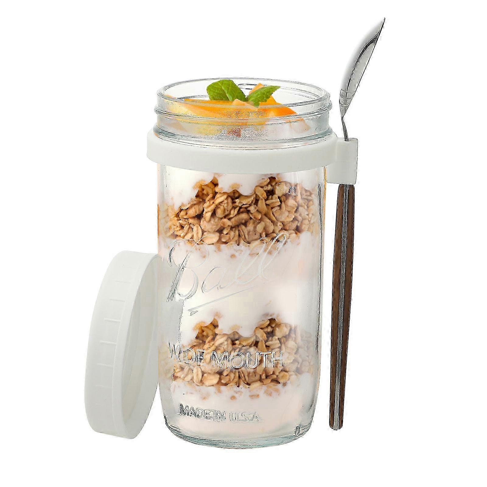 26-27 Oatmeal Cup Overnight Oats Jars Mug PP With Lid And Spoon Creative Multicolor Wide Mouth 350/600ml Glass Flower Receptacle Breakfast Cup