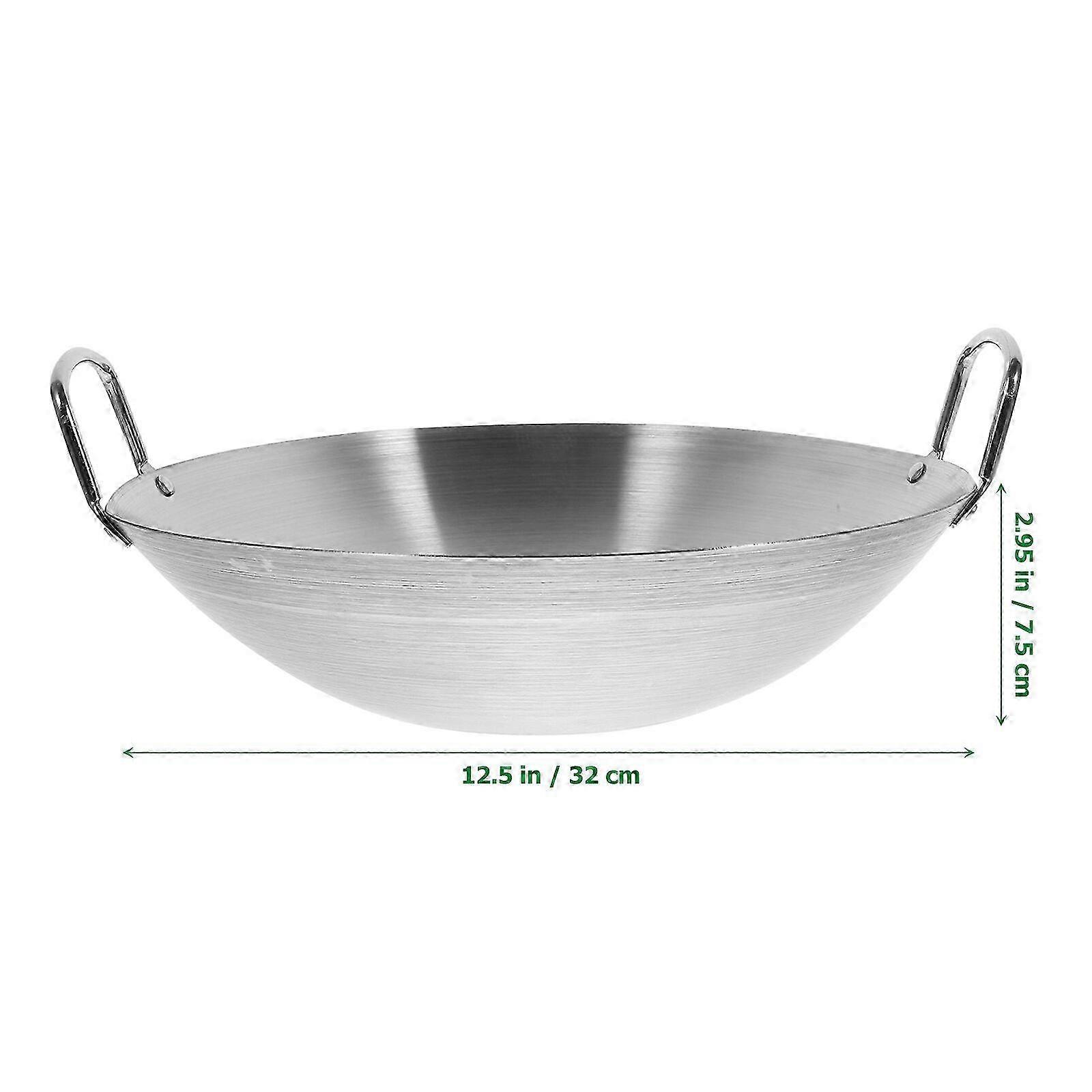 DescriptionThis wok is made of high-class stainless steel, which is durable and can be used for a long time. Has good heat resistance. Stainless design, easy to clean. With double handle, easy to use, not hot. This is a very convenient and economical household cookware.Features-Material: stainless steel-Size:32.00X27.50X7.50cm/12.58X10.81X2.95in-This stir-frying pan is made of premium material, you can keep it for a long term. -The round bottom pan is adapted to gas stove, which is convenient and practical.-Great for making BBQ, fried potatoes, scrambled eggs, hash brown, etc.-Our wok uses a special process, more convenient to clean, save time, let you fall in love with cooking.-Heats evenly and retains heat well, making it for keeping foods warmer longer.Packing list1 x wok Note: Due to the light and screen setting difference, the item's color may be slightly different from the pictures. Please allow slight dimension difference due to different manual measurement.