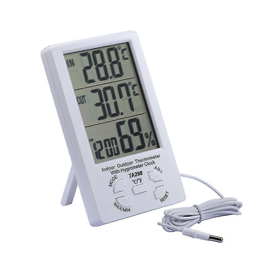 Indoor Outdoor LCD Digital Solar Temperature Meter Humidity Thermometer Time Clock with Outdoor Temperature Sensor 26-27s
