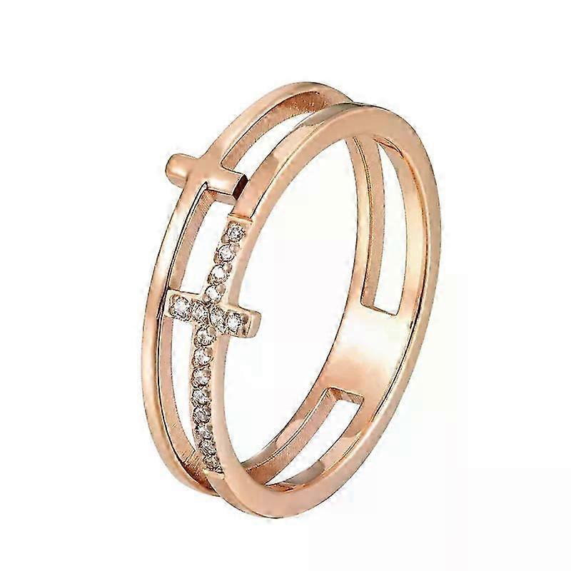 2026 Valentine's Day Gifts Beautiful Double Cross Inlaid Zircon Fashion Ring For Women Titanium Steel Gold Color Jewelry Love Ring Gift