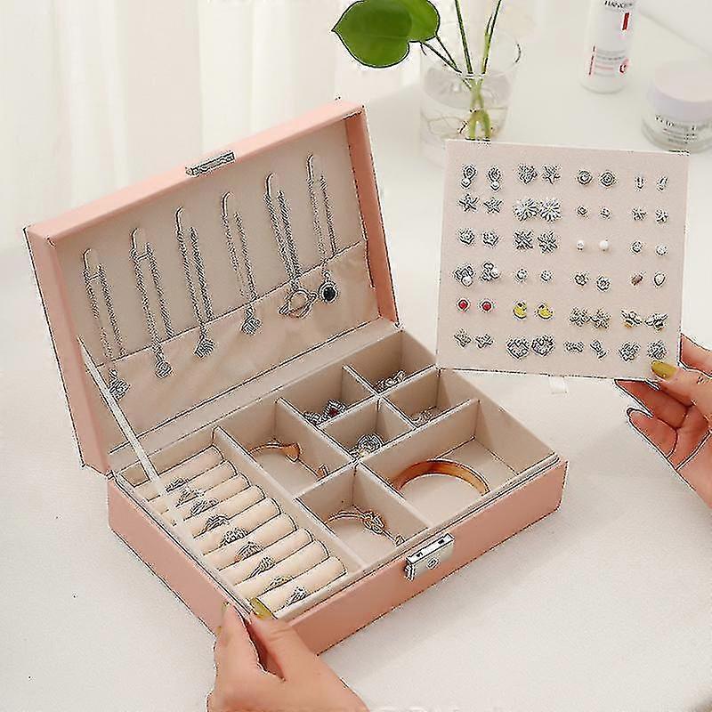 26-27 Pu Jewelry Box With Lock, Earrings, Earrings, Ring, Large Capacity Jewelry Storage Box