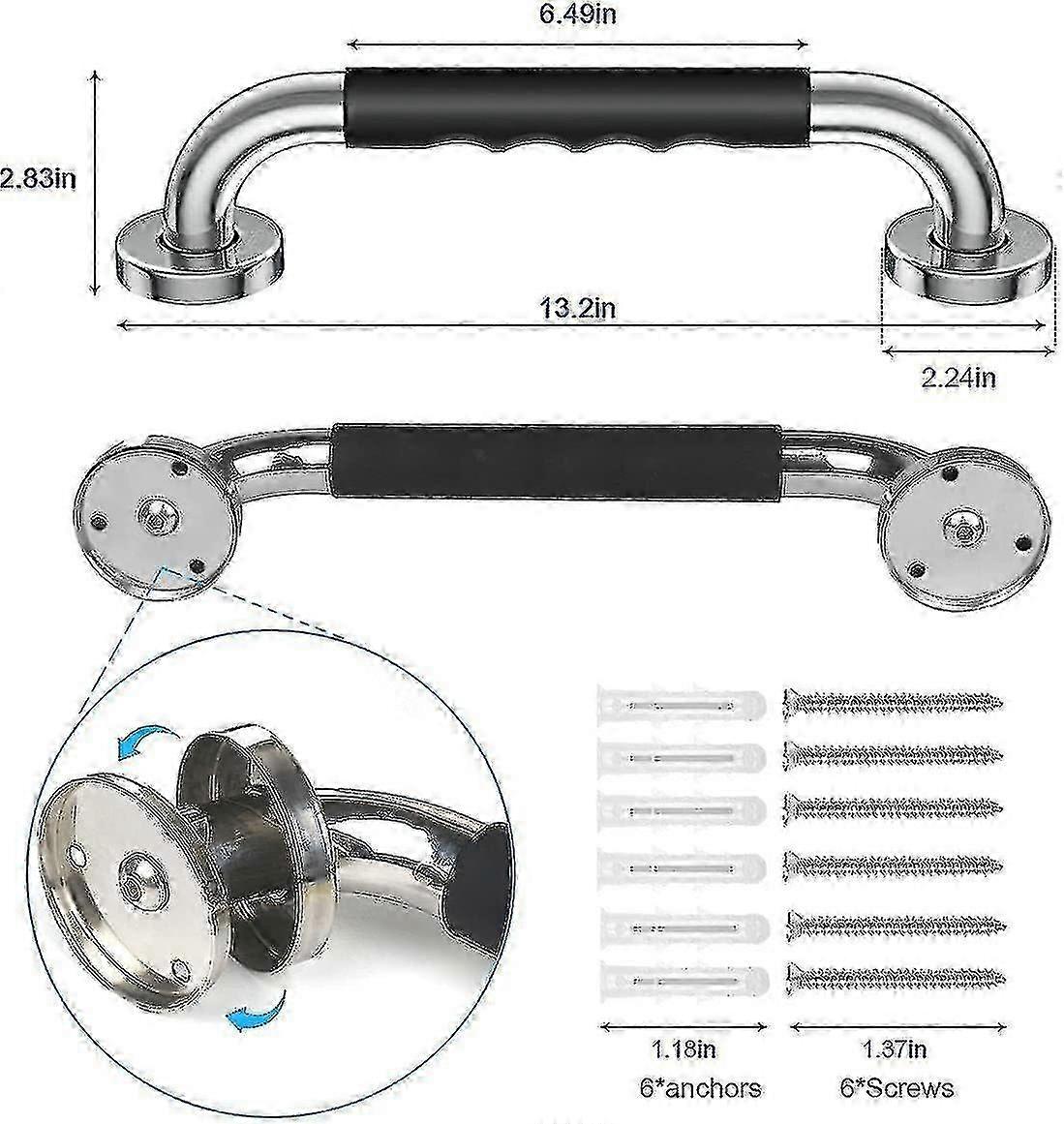 26-27 Bathroom Grab Bar, 30cm/11.81" Anti-slip Rubber Handle Sus304 Stainless Steel Safety Grab Bracket