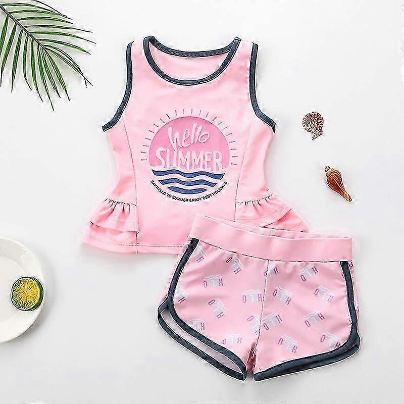Girl Two Pieces Suit Children Letter Print Swimsuit 3-12 Year Kid Cute Cartoon Swimwear 2023 Baby Beachwear Bathing Suit 26-27s