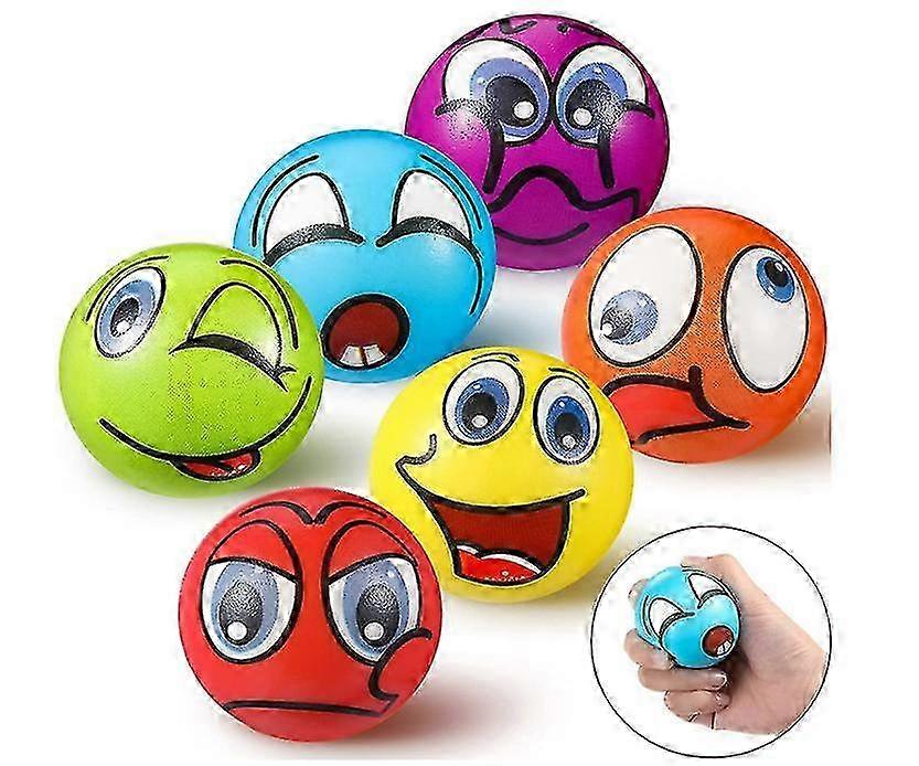 26-27 6 Funny Face Stress Balls 2.5 Inch Assorted Colors Soft PU Ball Random Assorted Stress Ball, Green, Yellow, Orange, Red, Purple, Blue, Pink(Red)