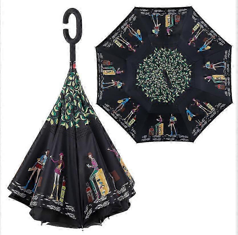 26-27 C-Handle Parasol Folding Rain Windproof Umbrella Double Layers Inverted Reverse