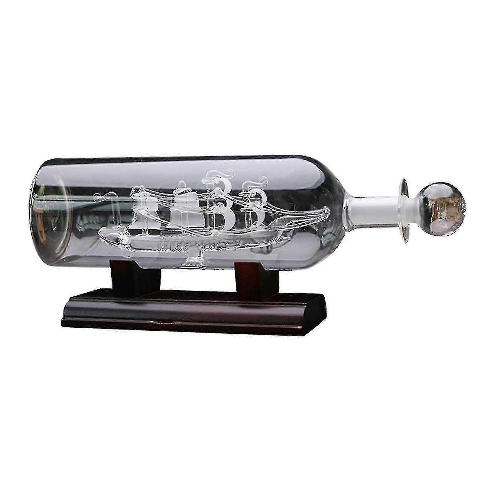 2026 Sailboat Drifting Bottle With Wooden Base 3d Decorative Glass Ornament Ship In Wine Bottle 24*10.2cm New TA