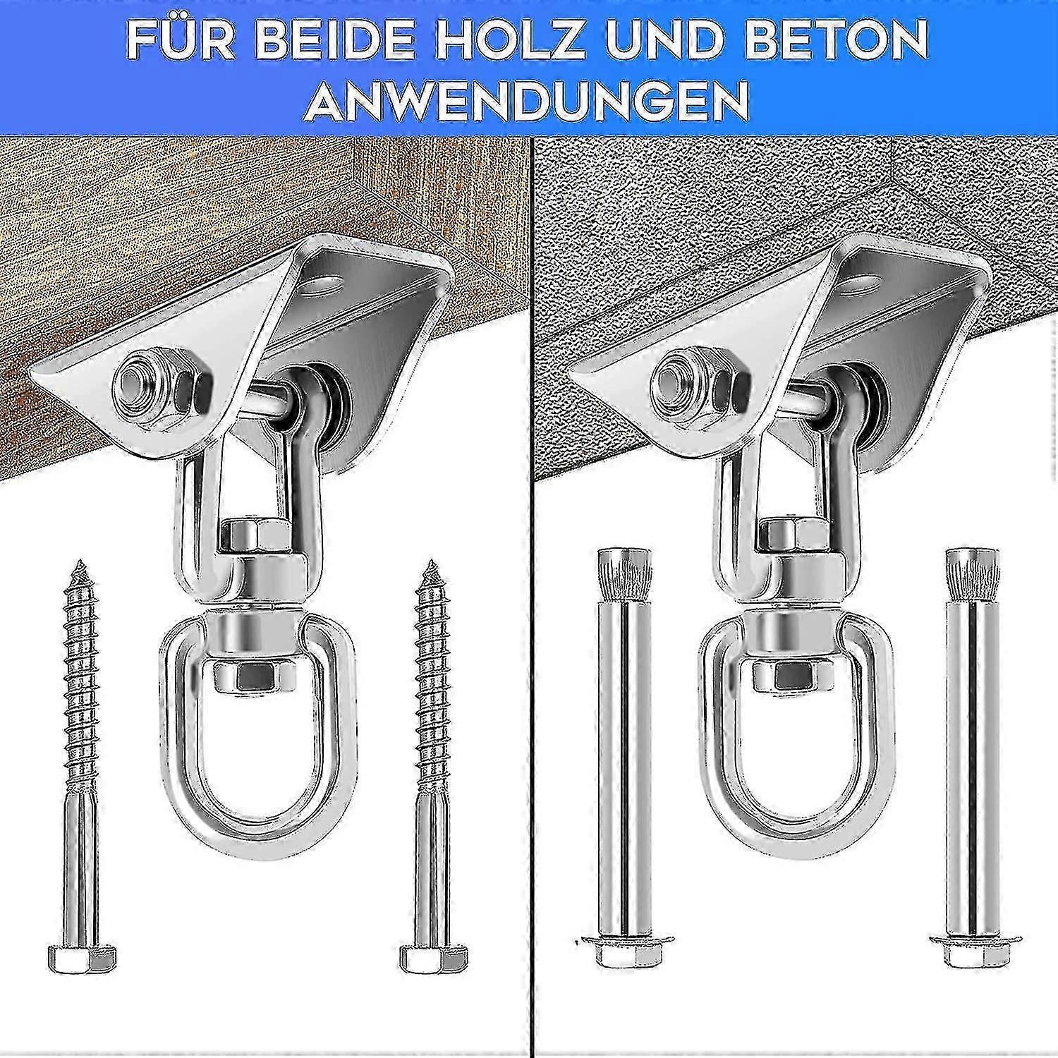 Indoor & Outdoor Use: Perfect for swings, porch swings, seesaws, sandbags, or anything heavy hanging from the rack. Corrosion resistance, high hardness : The 304 stainless steel ring is made of raw materials. No rust, corrosion resistance, high hardness, non-toxic and non-polluting environment. Easy to install: We pre-drilled two holes for bolting on wooden or concrete beams . Includes 2 concrete anchors and 2 hex lag bolts, and a unique one-piece design that sets up in minutes. Rotatable Design: Innovative design makes use more flexible and wider. such as playground swings, porch swings, or ham swings Safe and Sturdy: Count on these high-quality swing hangers to safely support children and adults alike. Note: Due to the light and screen setting difference, the item's color may be slightly different from the pictures. Please allow slight dimension difference due to different manual measurement.