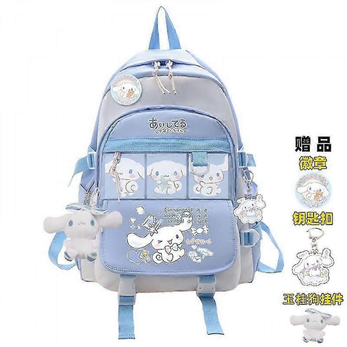 Anime Sanrioed Plyschleksak Cinnamoroll Ryggsäck Barn Flicka Pojke Blå Skolväska Kawaii Student Skol