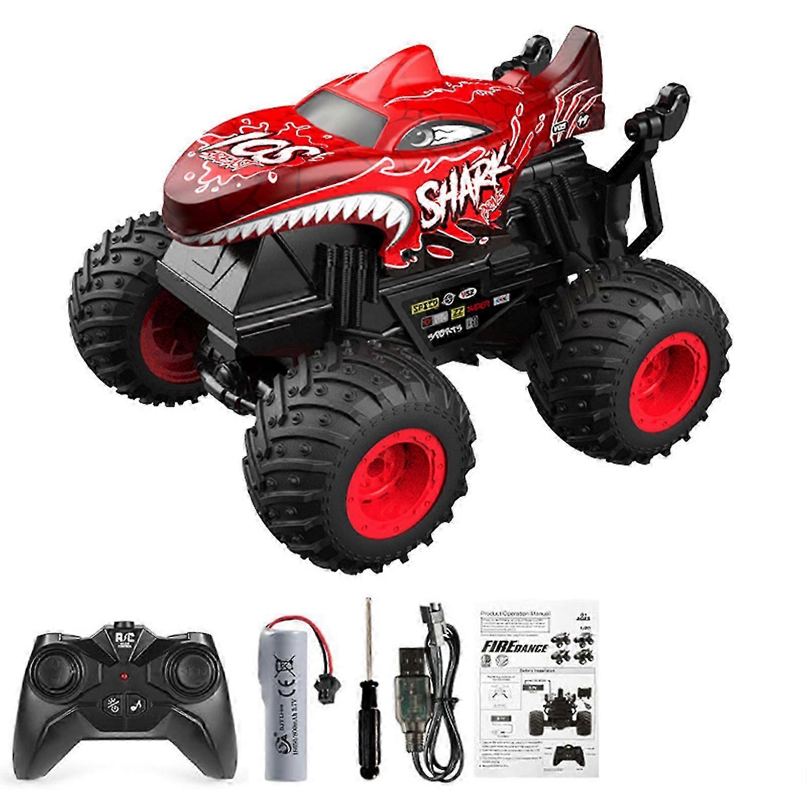 26-27 2.4GHz RC Monster Truck for Boys, 1:20 Dinosaur Remote Control Car with Light & Music, Stunt 360° Spin, Walk Upright & Drift