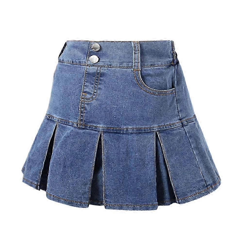 3-14Year Kids Teen Girls Skirts Trendy All-Match Pleated Denim Skirt Children Adolescents Casual Outing Jean Skirts with Pocket 26-27s