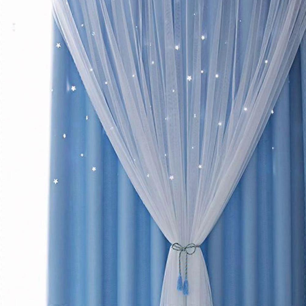 1-Panel Pink Starry Night Blackout Curtains Double Layer Hollow-Out Star Light Blocking Drapes For Bedroom Elegance Curtain 100x200cm 26-27s