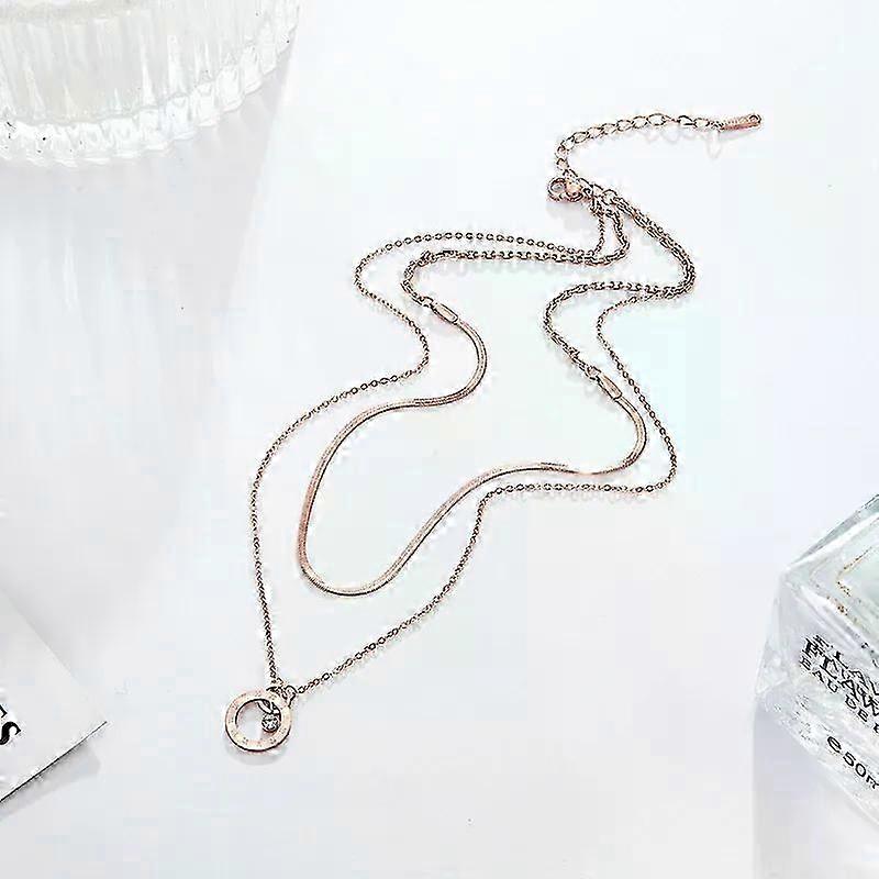 2026 Valentine's Day Gifts Snake And O Chain Double Layer Necklace Middle Zircon Roman Numeral Circle Pendant For Women Stainless Steel Jewelry Wholes