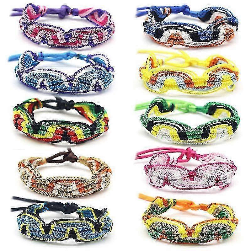 26-27 10pcs Handmade Colorful Nepal Woven Friendship Bracelets With A Sliding Knot Closure Unisex Adjustable Mix Colors Random