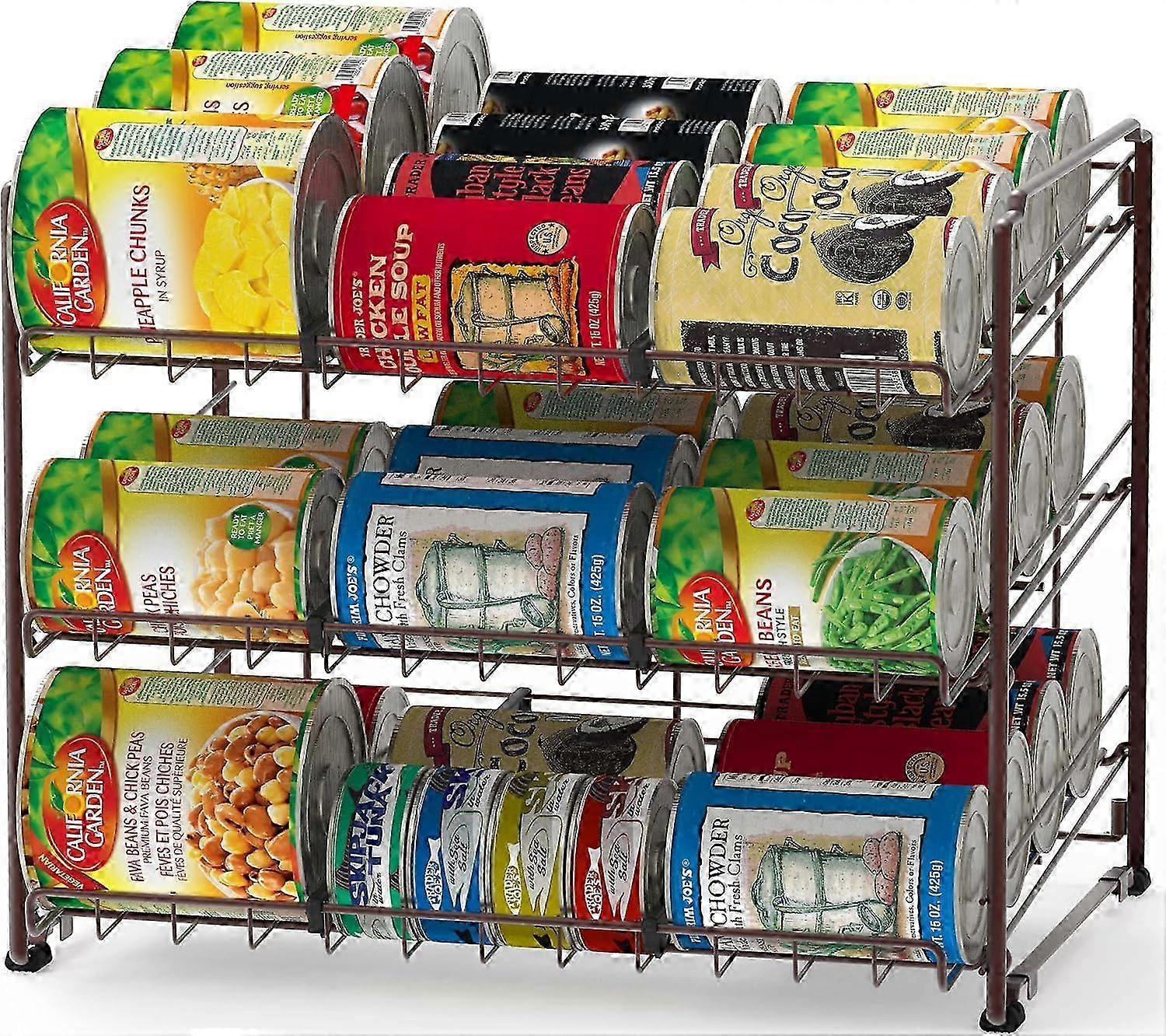 26-27 pleHouseware Stackable 3 Tier Can Rack Organiser for Kitchen and Pantry Organization, Silver Bronze