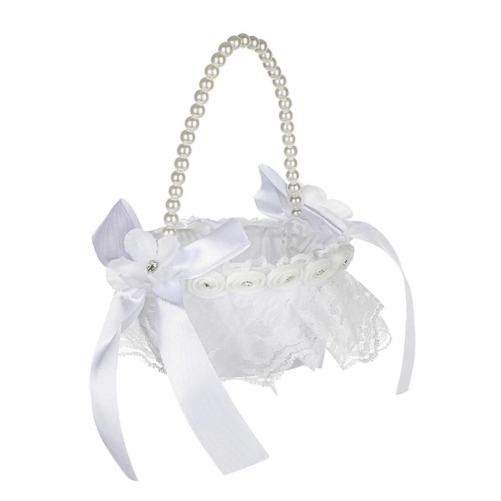 White Flower Girls Basket Simple Wedding Flower Basket Bride Bridesmaid Hand Held Basket Wedding Ceremony Party Decorations 26-27s